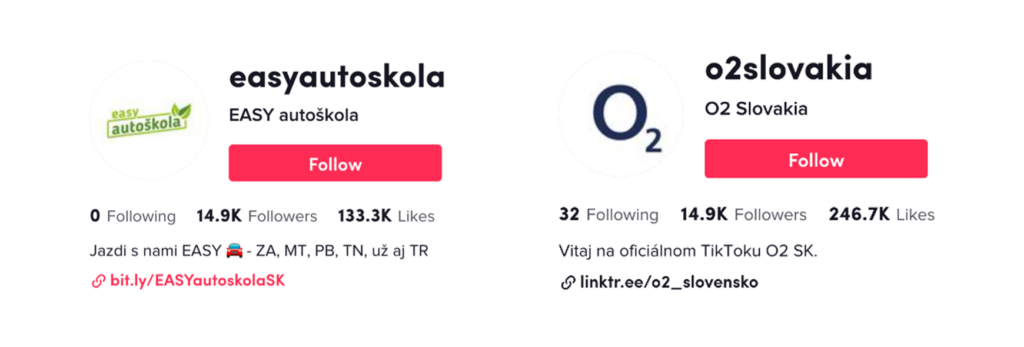 Aktuálne (v čase písania článku) má profil EASY autoškoly 14 949 sledovateľov. Keď si porovnáme profily 4 mobilných operátorov Telekom, Orange, O2 a 4ku, ktorí pôsobia na Slovensku celoplošne, tak naša lokálna EASY autoškola má (v čase písania tohto článku) rovnaký počet sledovateľov ako O2, ktoré je z týchto operátorov na TikToku najsilnejšie.