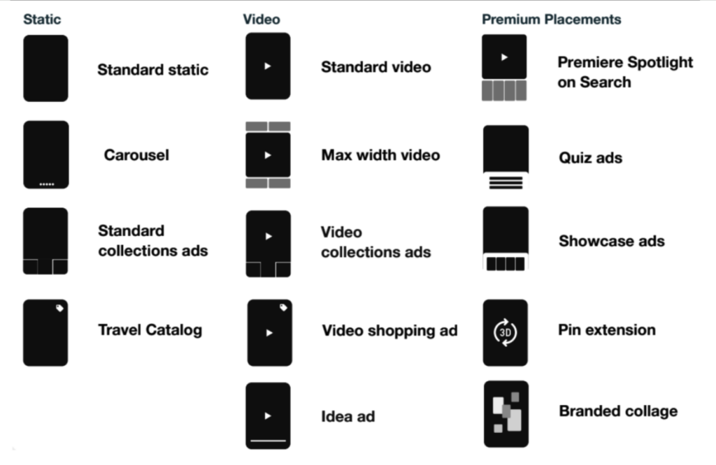 Samotný Pinterest ponúka osvedčené postupy, ako efektívne tvoriť obsah a zaujať publikum. Okrem toho si môžete pozrieť aj prehľad rôznych formátov Pinov, ktoré máte k dispozícii nižšie.